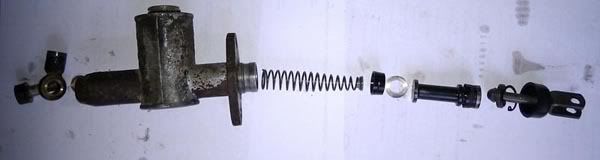 The brake m/c was a lot easier!Anyway, both items were dismantled, cleaned out with meths and prepped for painting. The seal kit that I'd bought turned out to the the wrong one (it only cost £3.25 on eBay!) so another one has been ordered. Here's the clutch master cylinder: