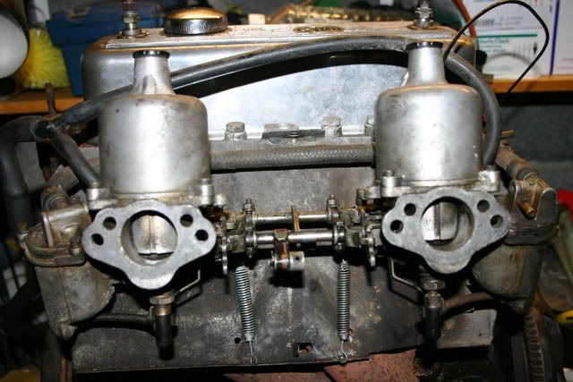 As you can see there's not a lot left in the engine bay, just a few bits to undo and remove. The carbs and manifolds are staying on the engine for now.