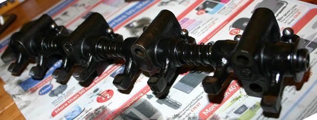 After spending £432 on the car yesterday, today has thankfully been a bit less eventful. When Steve came round last weekend, I showed him the rocker assembly (the bit on top of the cylinderhead, for my American readers) and it was deemed to be reusable but required some re-finishing to the bottoms of the rockers themselves so that you can get an accurate setting with a feeler guage because it's actually resting on the surface between the rocker and valve, not on the ridges either side.