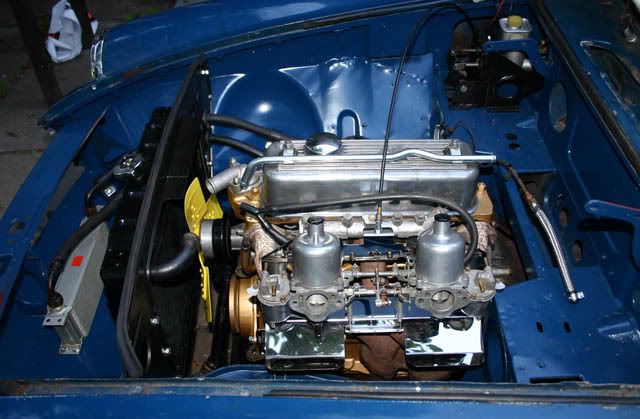 Today, I got on with fitting the carbs, manifolds, oil cooler, radiator, etc. You can see what's what in the pictures. I also partially assembled the pedal box with the rebuilt mastercylinders.